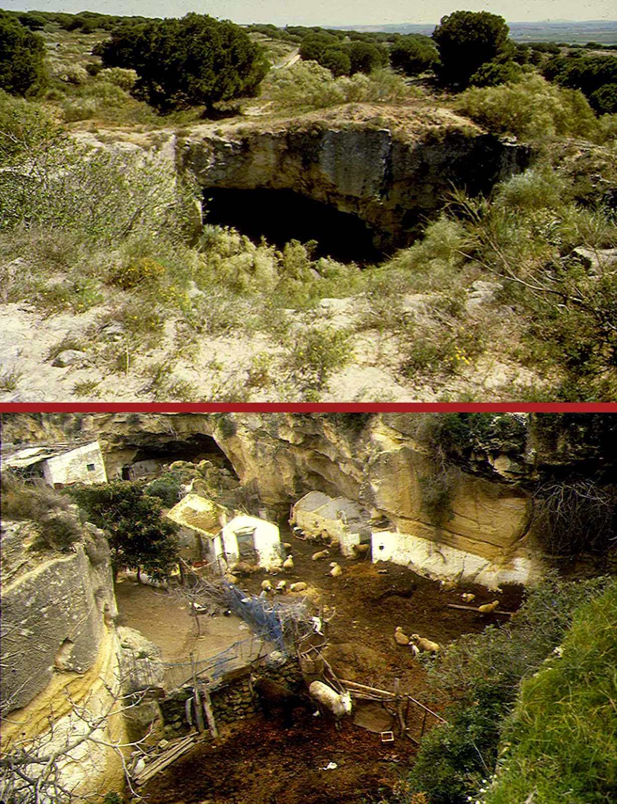 en la zona militar con una cobertura vegetal importante. Abajo, cueva-cantera