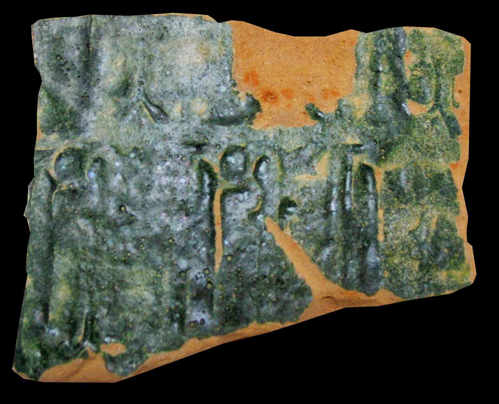 3 Fragmento de borde de tinaja estampillada con las palabras ‘La Paz’, procedente de la alquería de Finojera. / Museo Municipal.