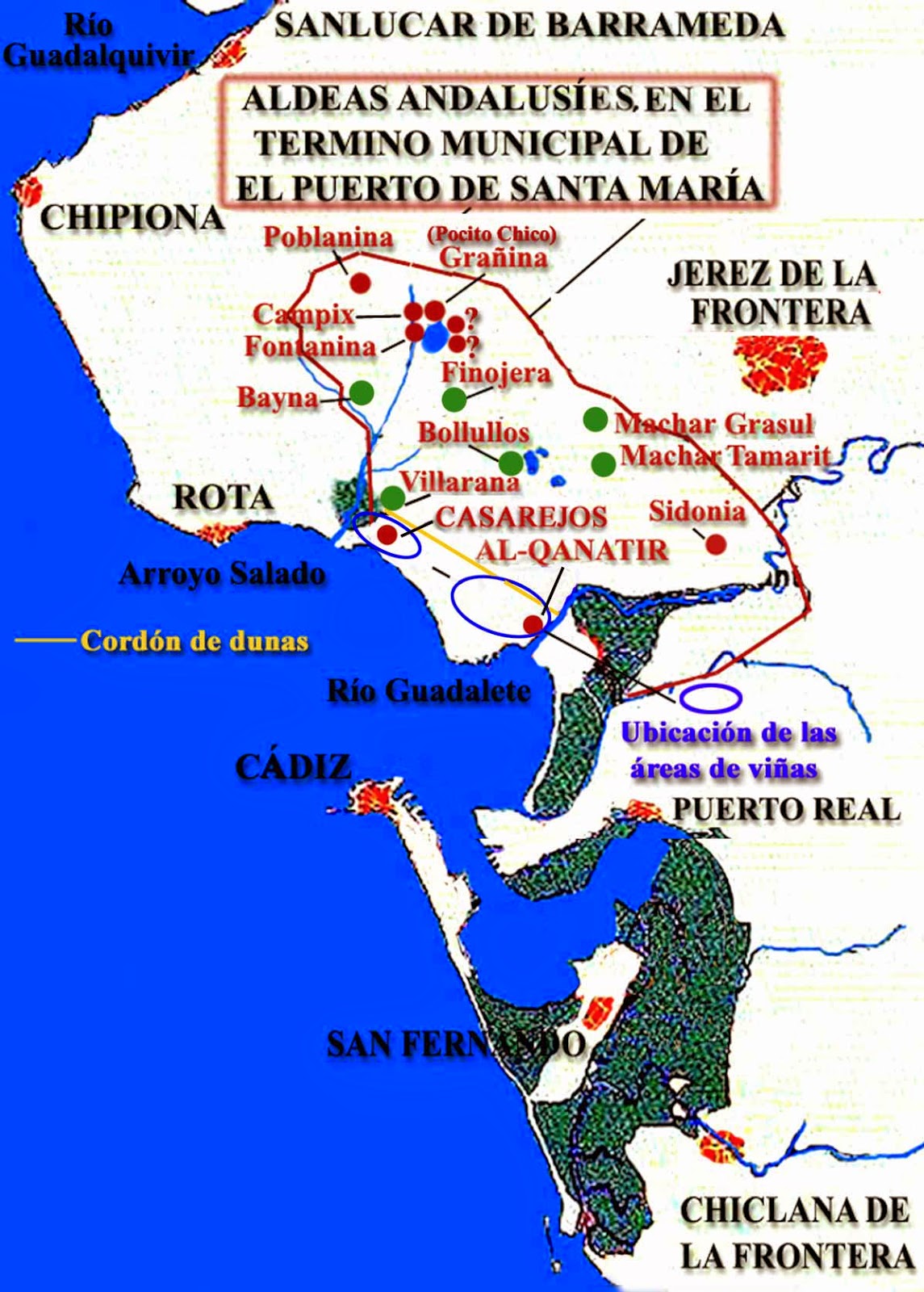 término portuense dependieron fiscal y administrativamente de Jerez (Saris), la capital de la cora de Sidonia desde la segunda mitad