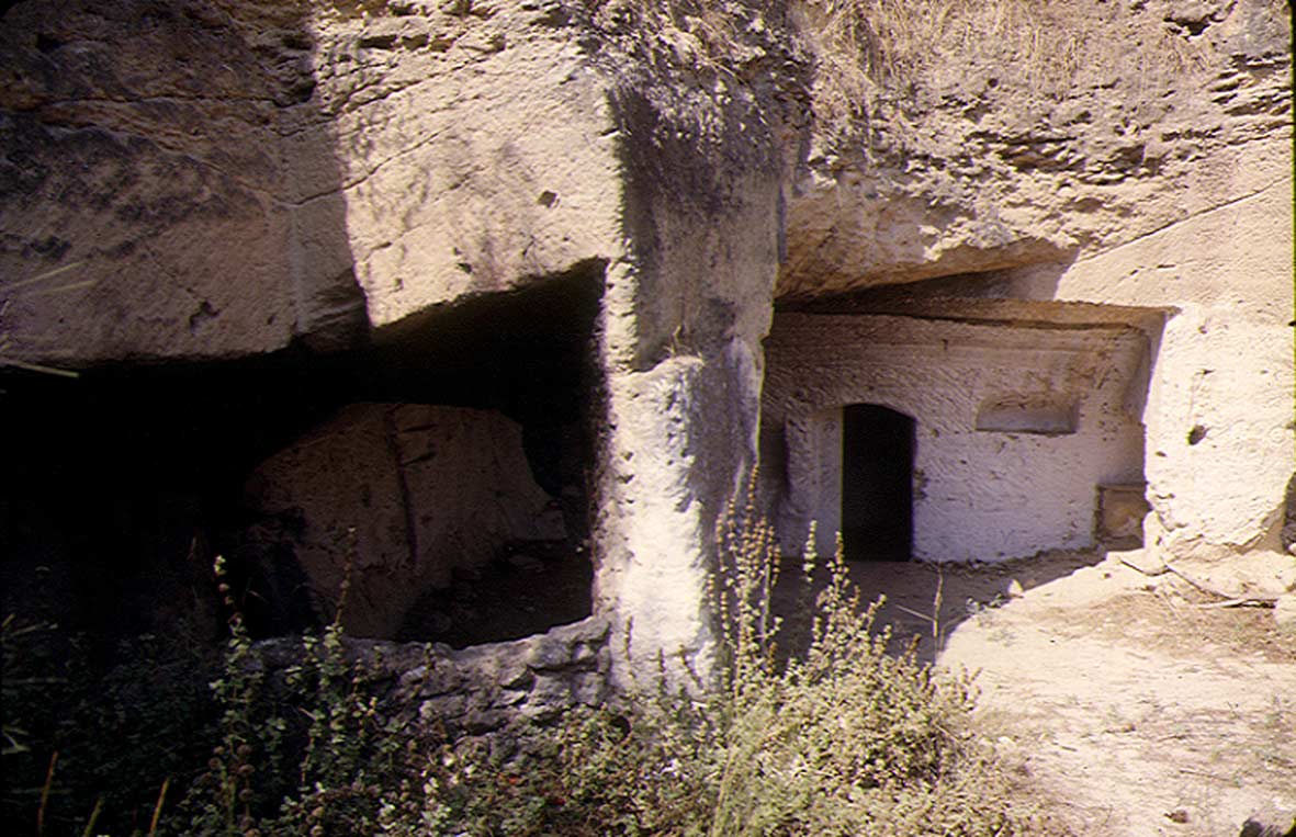 vivienda-cueva frente a Doña Blanca, en la necrópolis de Las Cumbres, observándose la cocina y el cercado para el