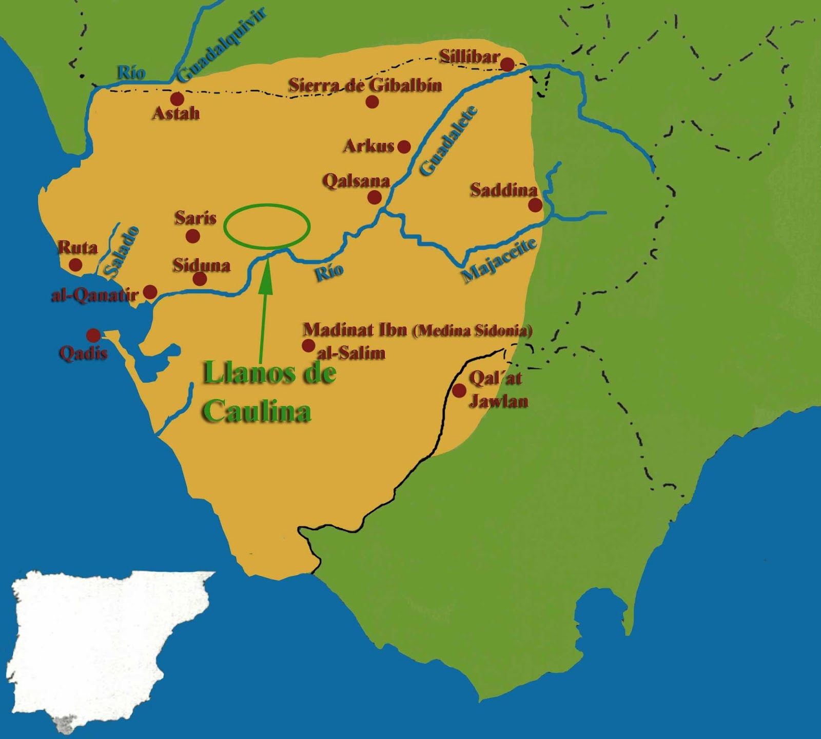 poblaciones y los Llanos de Caulina, probable lugar de la batalla del Guadalete.